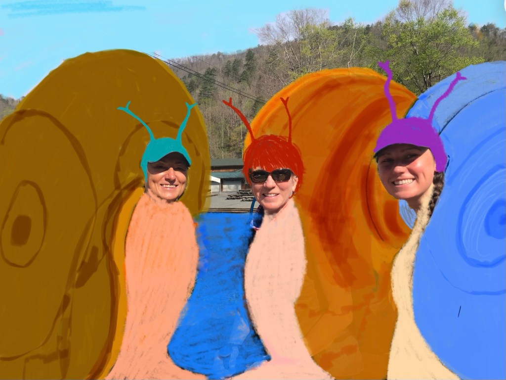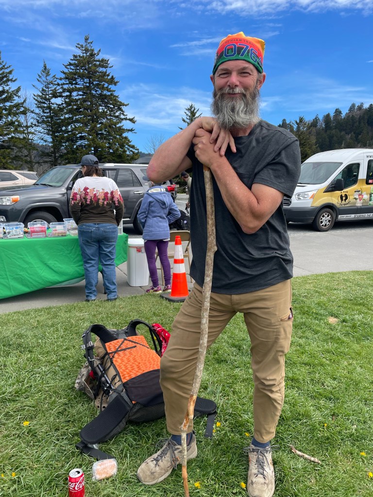 Unfortunately, as we arrive in Hot Springs, NC this is where Peeps will be leaving the trail. 🙁. She has been an absolute pleasure to hike with and during her 2 weeks has experienced pretty much every element of the experience. Including a stay at the Standing Bear Hostel a veritable hippy compound for thru hikers, eclectic, magical and amazing food!! Peeps aka Helga kicked butt on some major climbs and while also managing to stay fashionable throughout. 😉 We will miss her energy, fun and Helga-isms.