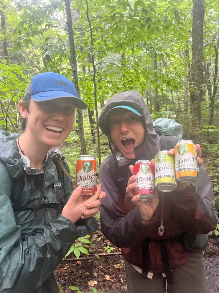 The hike was not without its pleasantries, as we had a break from the rain just long enough to eat lunch at a beautiful lake, saw one of the largest waterfalls in Vermont and nothing brightens your spirits quite like…beer!!