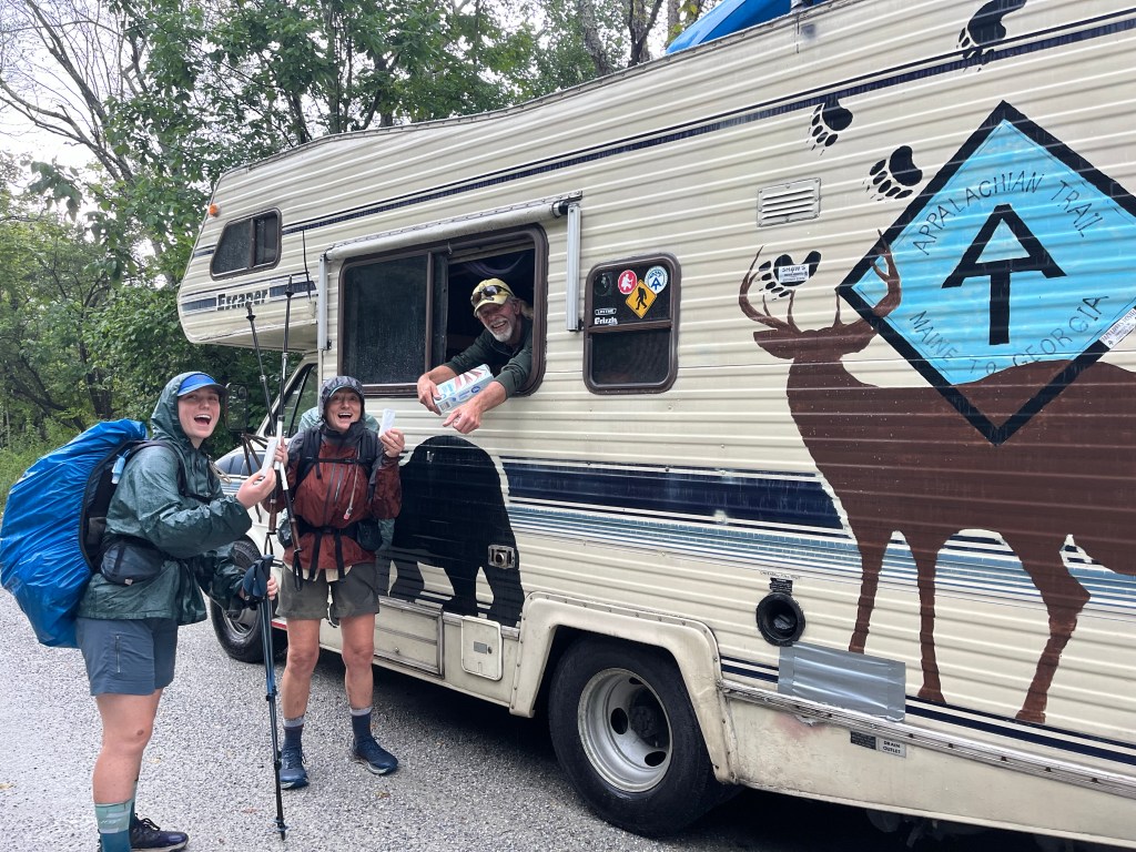 The following days were full of beautiful events! Ember informed us that her hiking buddies she had met earlier on trail were coming to meet her to run trail magic, and the two of us were fortunate to join in. They cooked us a delicious dinner of burgers (complete with a veggie patty for Katniss!) and regaled us with stories from all of their adventures on and off trail. Talk about a power couple! Scarecrow and Violet were true adventurers and it was such a delight to meet them. As Katniss says, “can we be friends??”
